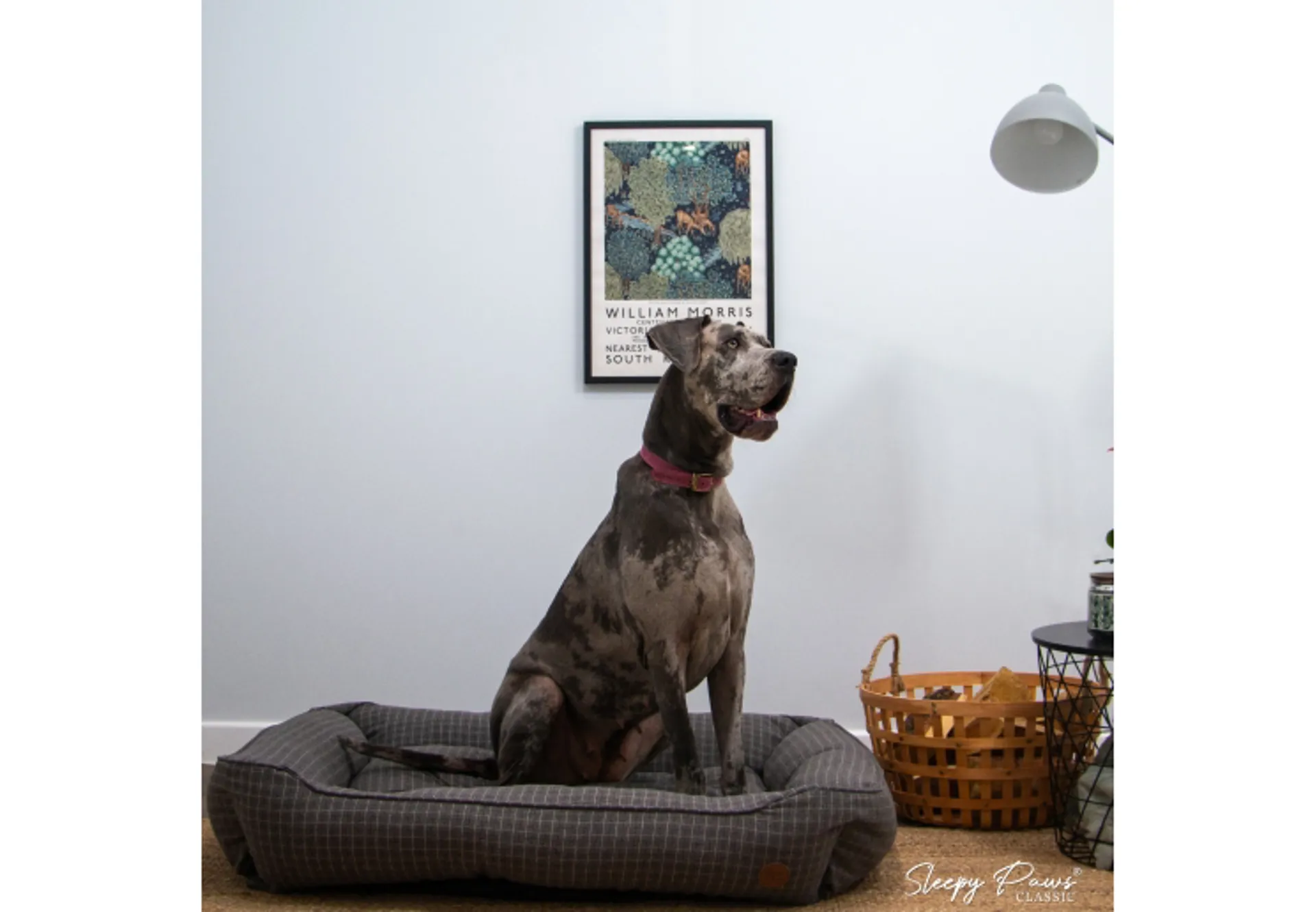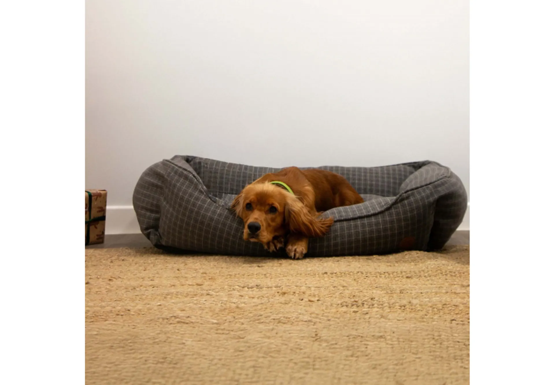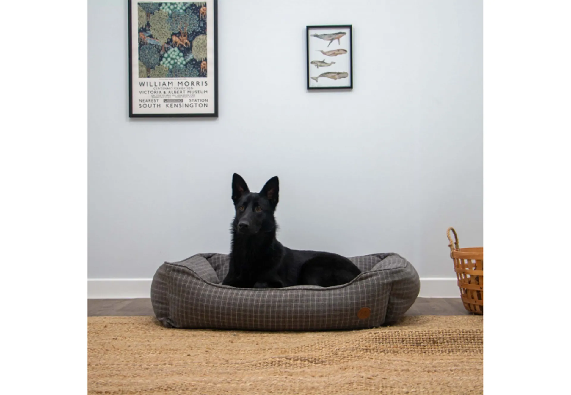 Grey check dog bed